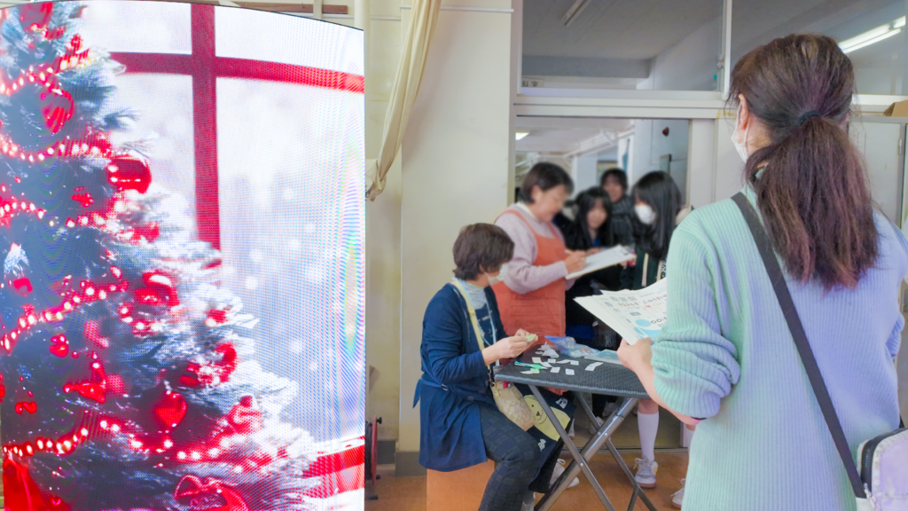 2025年12月8日(月)に、原宿外苑中学校で開催された地域交流イベント「原外カフェ」において、生徒が自然に参加できる交流のきっかけづくりと、世代を問わず楽しめる分かりやすい演出を目的にLEDビジョンを導入しました。