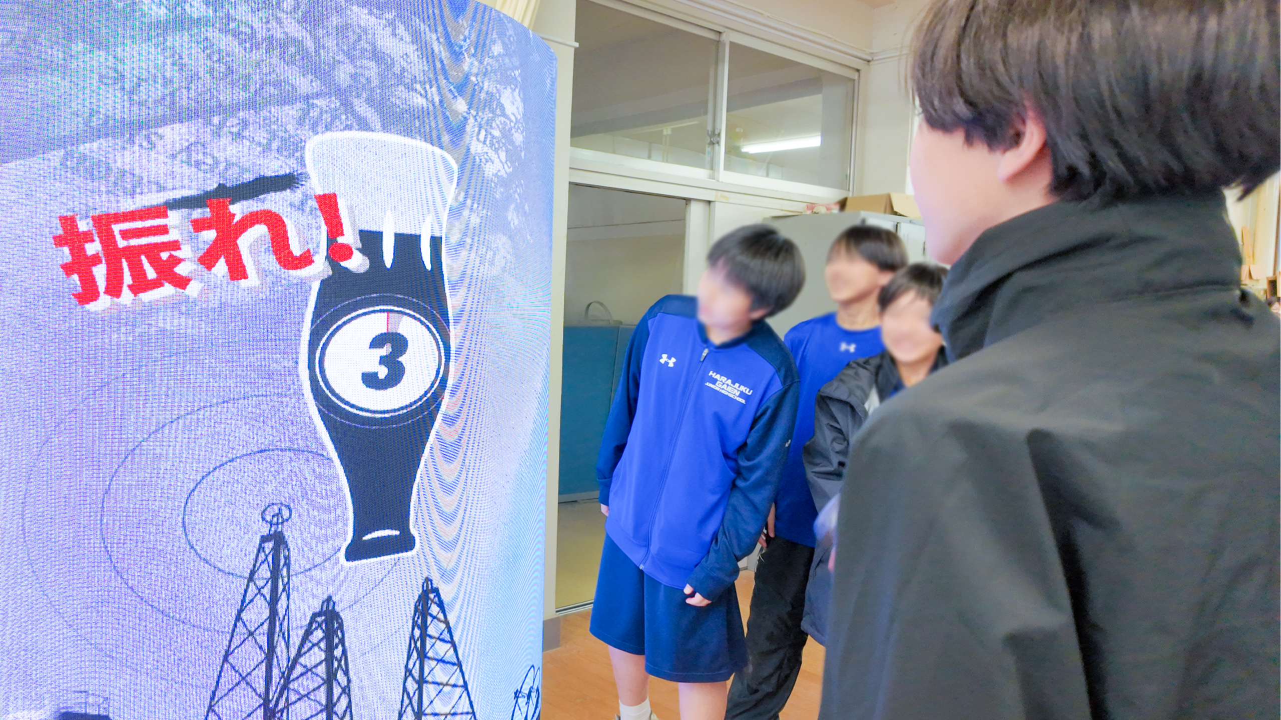 クリスマス装飾と調和した空間演出の中で、連動型コンテンツ「JET COLAゲーム」を展開したことで、生徒の挑戦をきっかけに笑顔と活気が生まれ、会場全体の交流が活性化。デジタル演出によって一体感とにぎわいを創出し、地域コミュニティに新たな体験価値を付加しました。